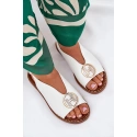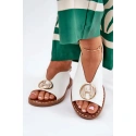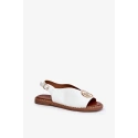 Sandály z eko kůže jsou elegantní nabídkou na letní dny. Uložené na plochém podpatku, zajišťují komfort a stabilitu. Vpředu ozdoba, která přidává jemné kouzlo. Zapínané na nastavitelný pásek s přezkou, umožňují ideální přizpůsobení k noze. Tyto sandály budou vynikající volbou pro elegantní stylizace, spojující módní vzhled s pohodlím.