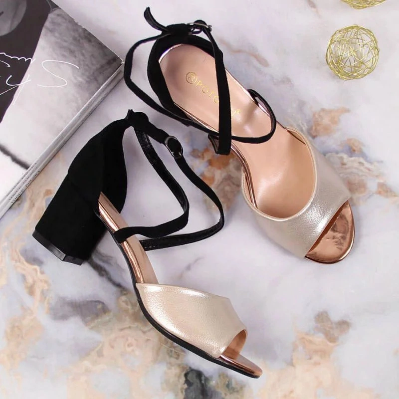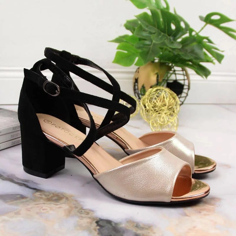 WOL68 černé a zlaté sandály na jehlovém podpatku značky Potocki Vlastnosti: boty Potocki ideální pr