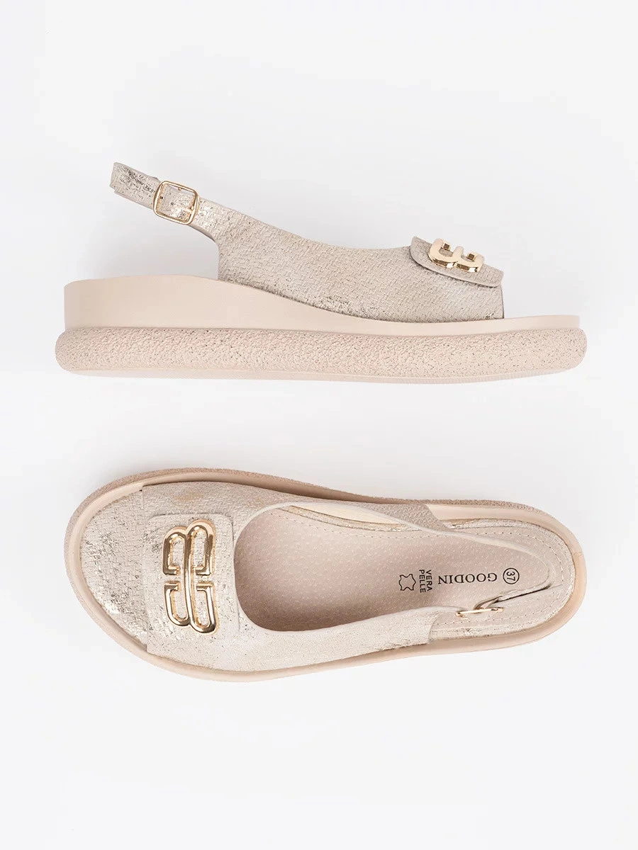 Dámské sandály na klínku FL1711 - GOODIN světlá káva 37