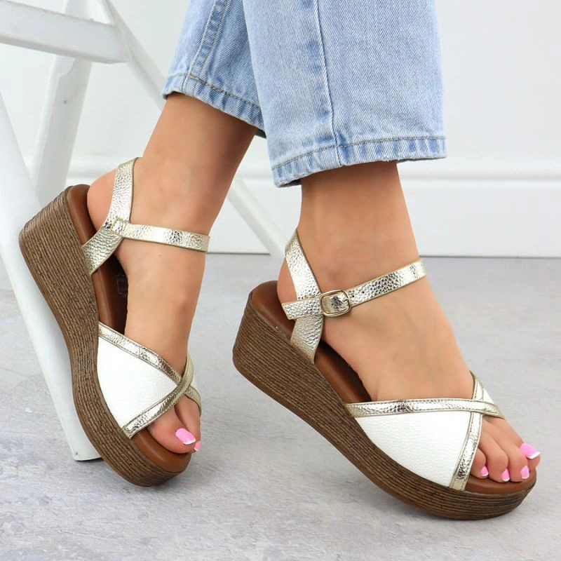 Popis Dámské sandály na platformě bílé a zlaté S.Barski PL51-324