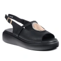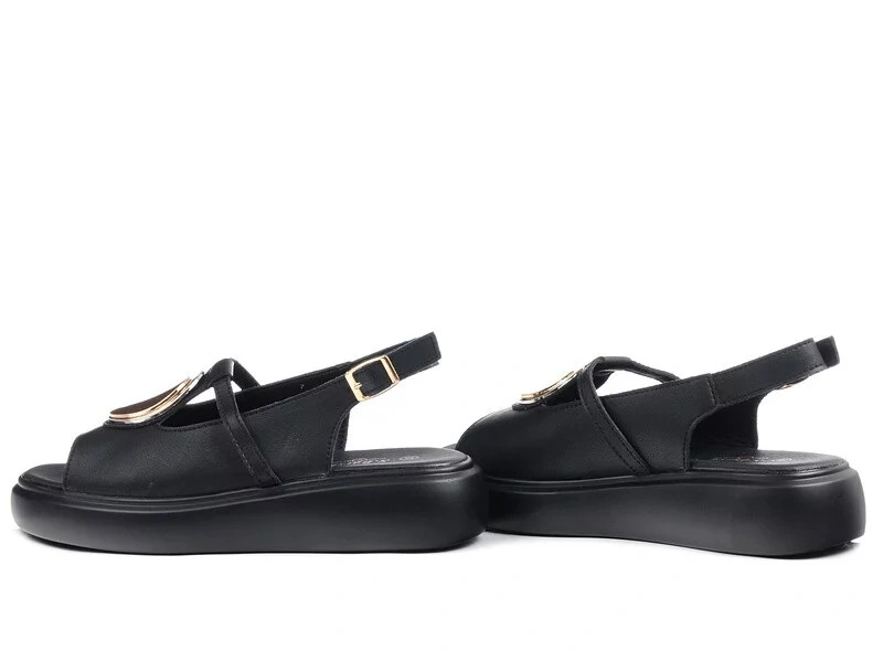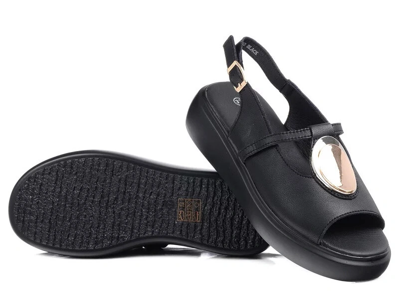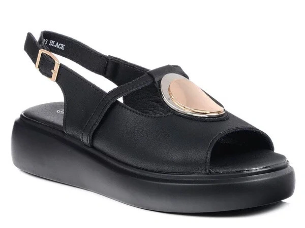 Dámské sandály od značky S.Barski. Vyrobené z přírodní kůže, umístěné na platformě a jemném klínku. Na přední části boty je ozdobný detail, který jim dodává výjimečný charakter. Zapínají se na sponu s nastavitelným páskem, což zajišťuje ideální přizpůsobení noze. Tyto sandály budou skvělou volbou na letní výlety, spojující eleganci s pohodlím, ideální k šatům, sukním nebo kalhotám.