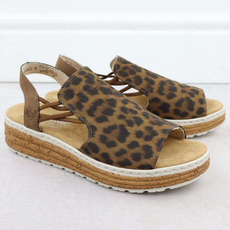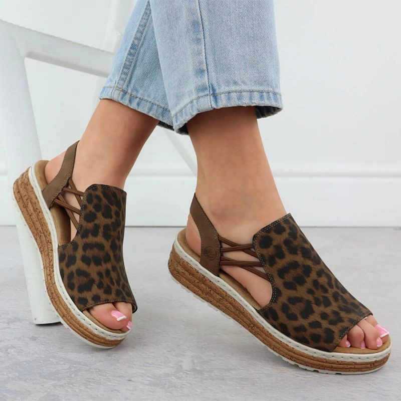 Popis Dámské sandály na platformě s leopardím vzorem v béžové barvě Rieker 62741-90
