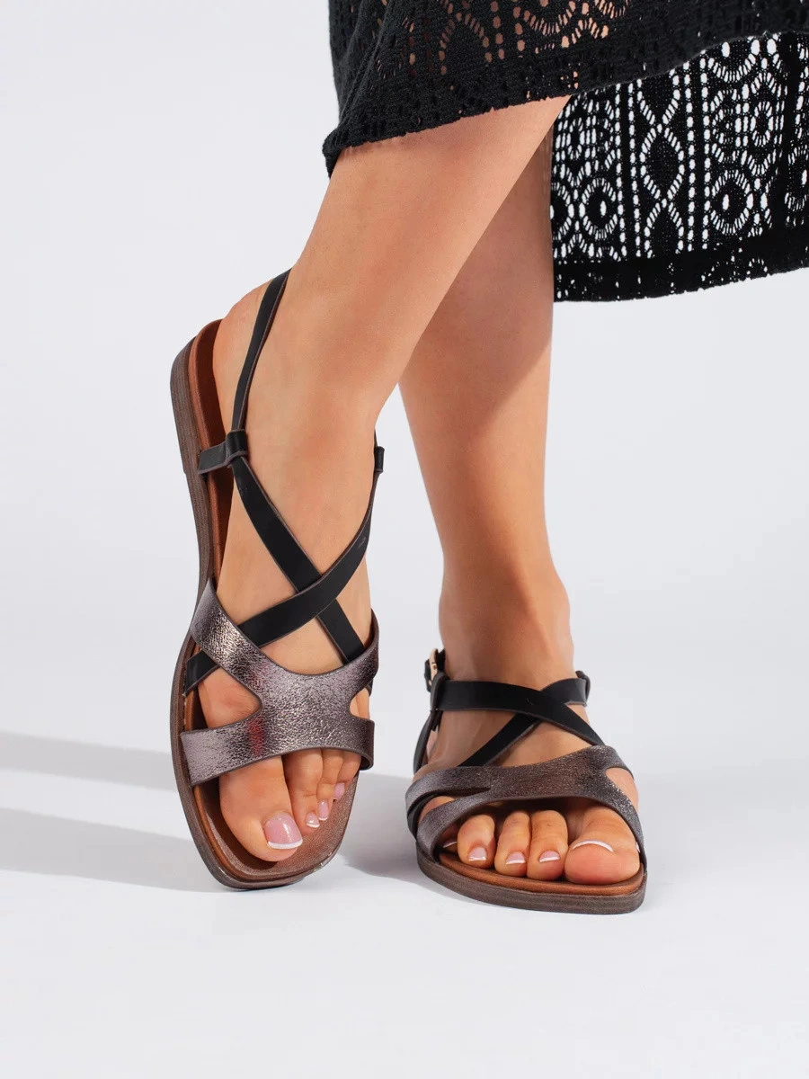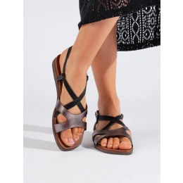Dámské sandály na plochém podpatku SK-073B 4erná s hnědou - Sergio Leone