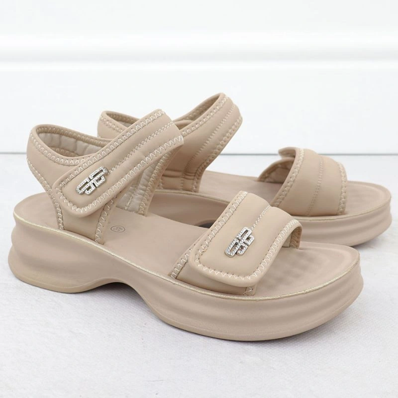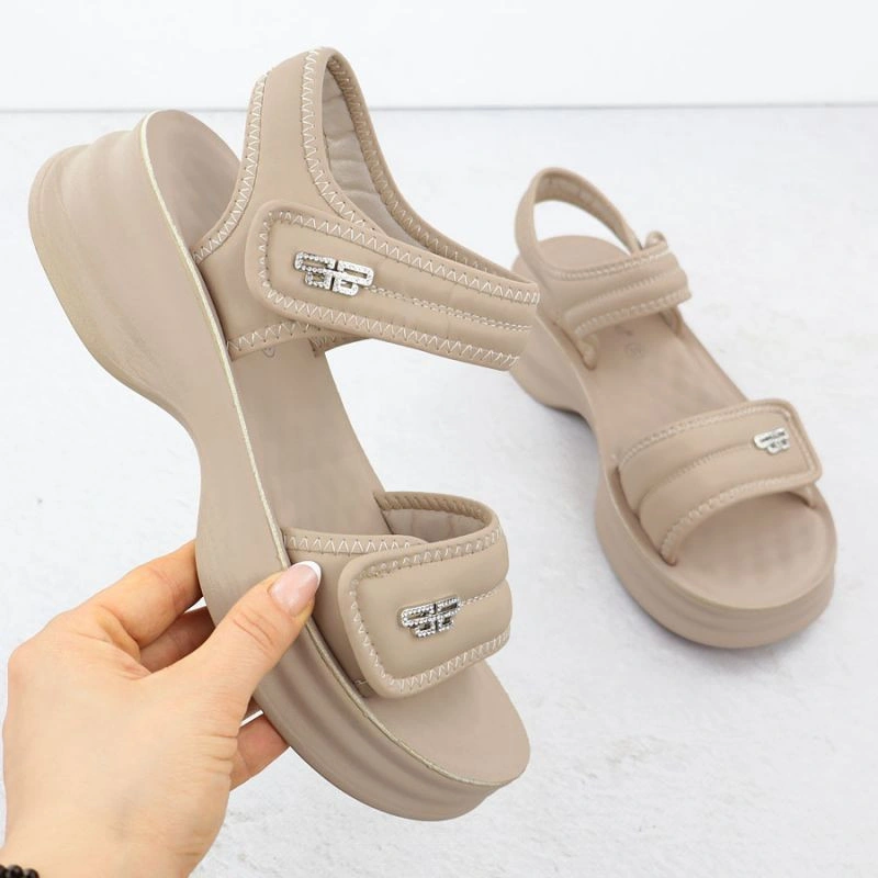 Popis Dámské sandály na silné podrážce s pásky na suchý zip béžové Potocki 105300