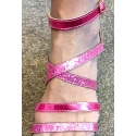 Dámské lesklé sandálky na klínovém podpatku. Ve fuchsiovo-hnědé barvě.