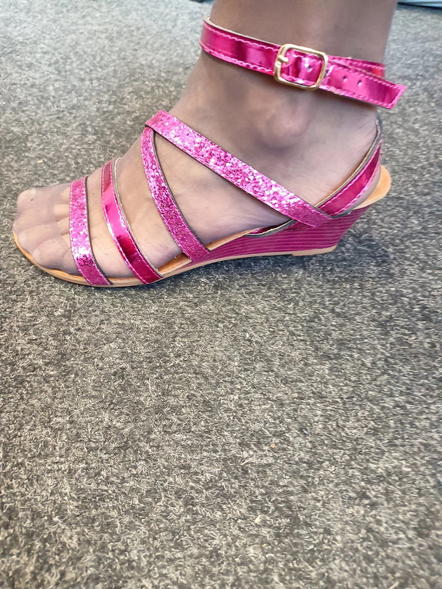 Dámské sandálky na klín podpatku Fuchsiová tm. růžová - Super me