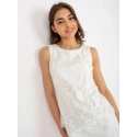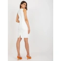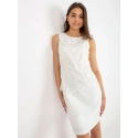 Koktejlové šaty v barvě ecru s kulatým výstřihem.