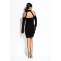 Přiléhavé šaty s dlouhými rukávy ukončenými na úrovni kolen, s půlkulatým výstřihem a rozparkem na z