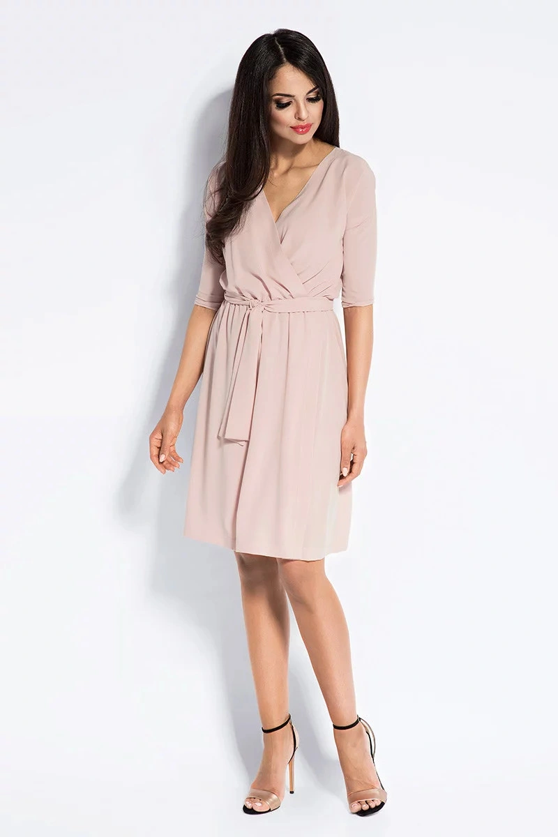 Dámské elegantní šaty M202 FIGL jsou jednoduchého střihu s 3/4 rukávy. Šaty jsou perfektního s střih