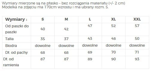 | Délka od podpaží | 68 | 68 | 69 | 70 | 71 |