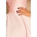 Model je k dostání v pastelově růžové barvě. Vzor krajky se může lišit. Tyto šaty značky Numoco jsou polským výrobkem.