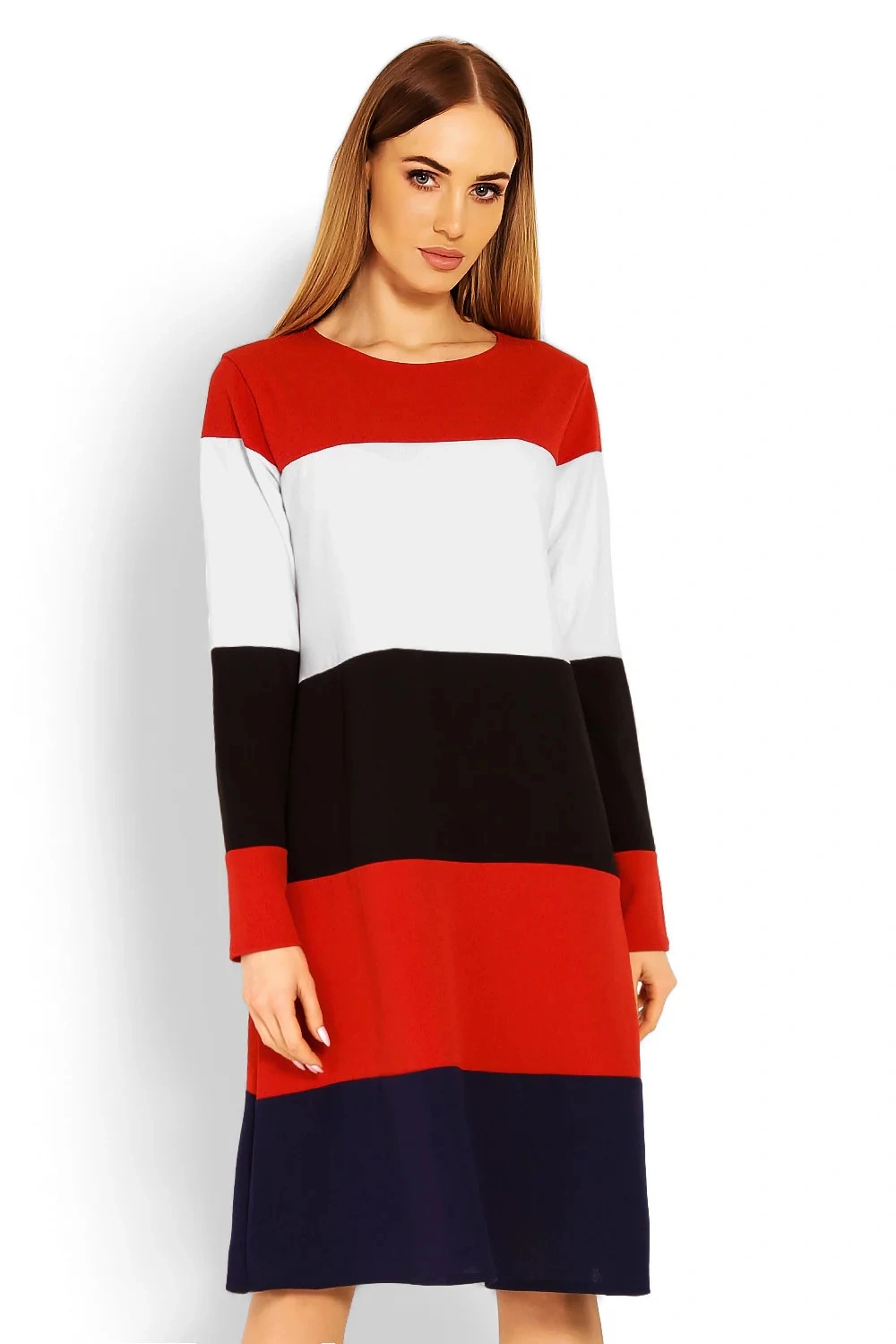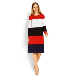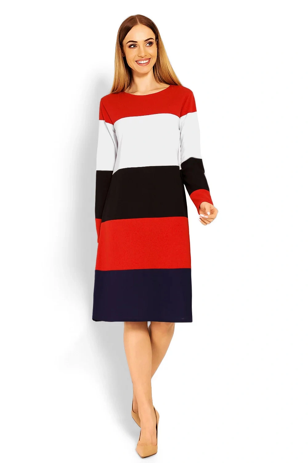 Zvolte sportovní eleganci a vyberte si jednoduché šaty v námořnických pruzích s kontrastním výstřihe
