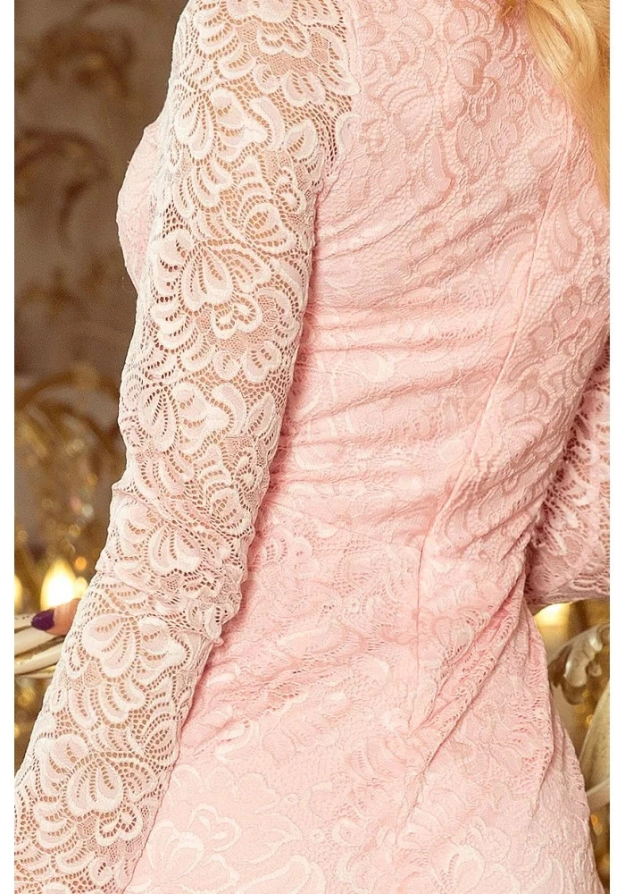 Úchvatné dámské šaty 170-4 Numoco - vyrobené z kvalitního mtateriálu s krajkovou vrstvou - výstřih ve tvaru písmena V - s dlouhými rukávy - dokonale zvýrazní vaší postavu