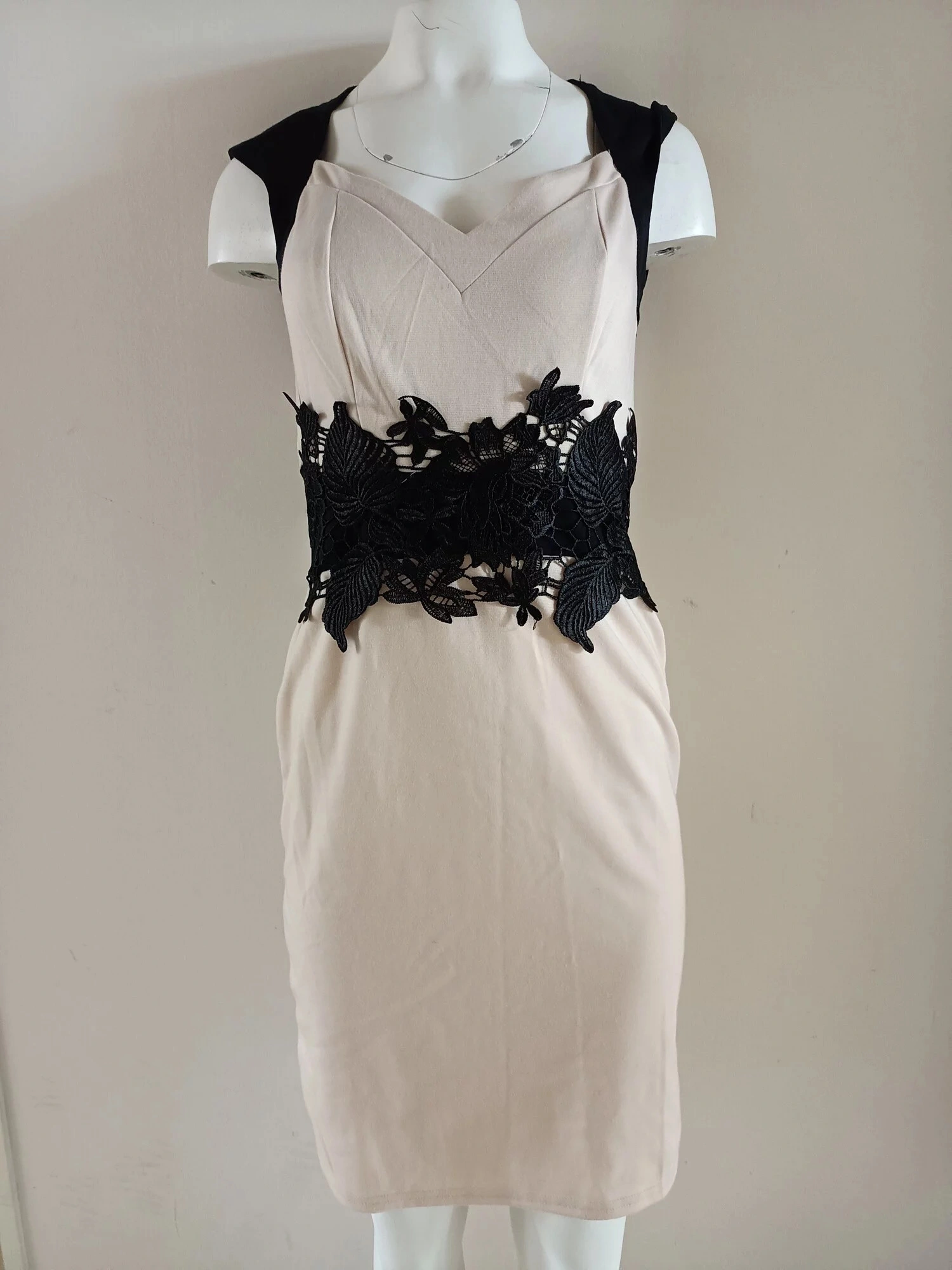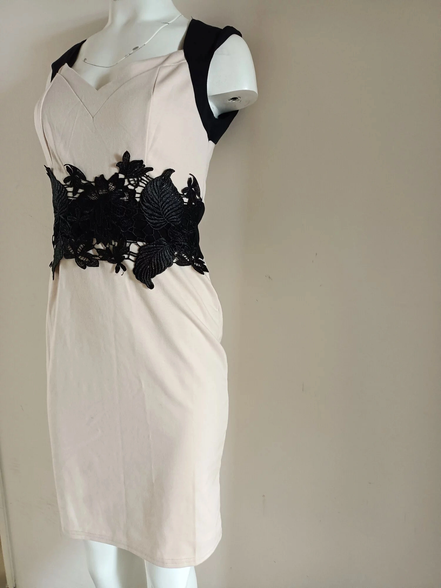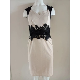 Dámské krátké šaty bez rukávů, v pase černá vsadka vepředu s našitou velkou luxusní krajkou.