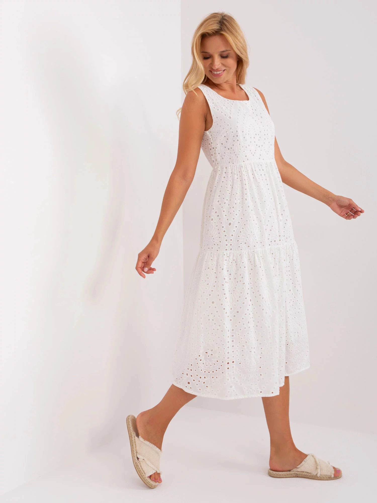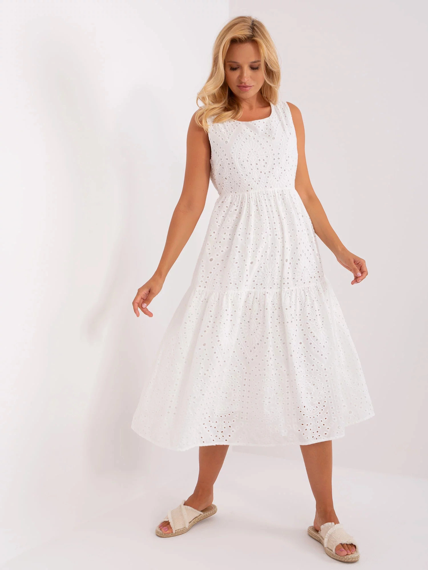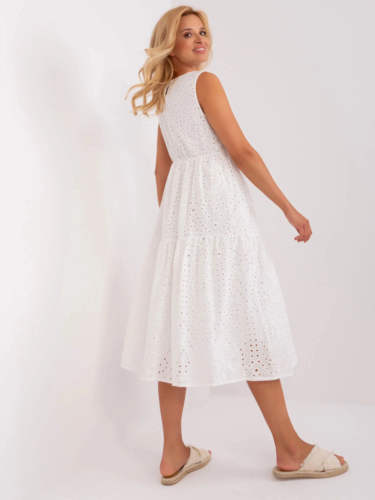 Bílé ažurové šaty s volánem OCH BELLA .