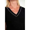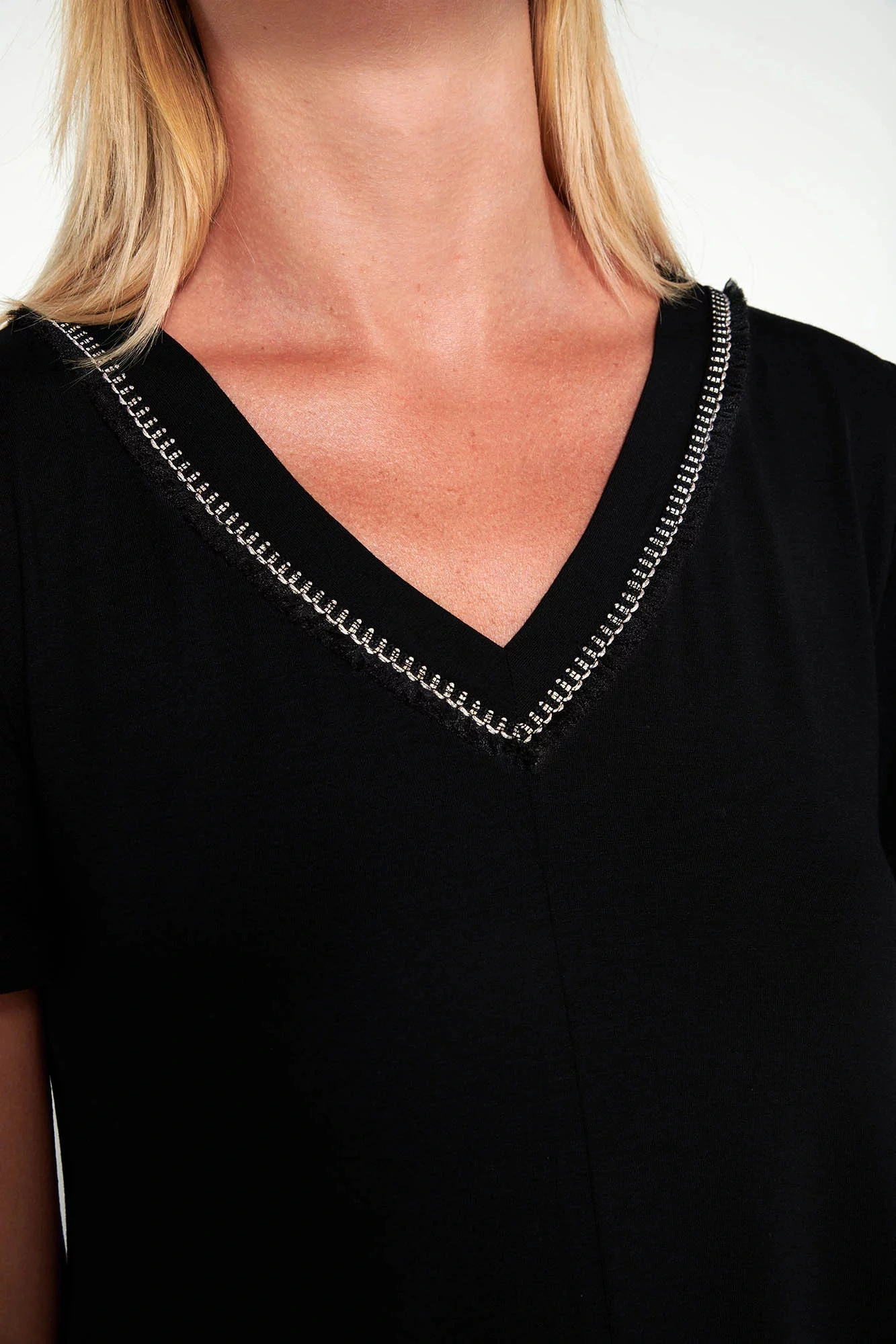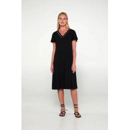Šaty s krátkými rukávy a výstřihem do V ve volném střihu. Jednoduchý návrh, který poskytne pohodlí a eleganci pro každý den.