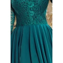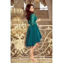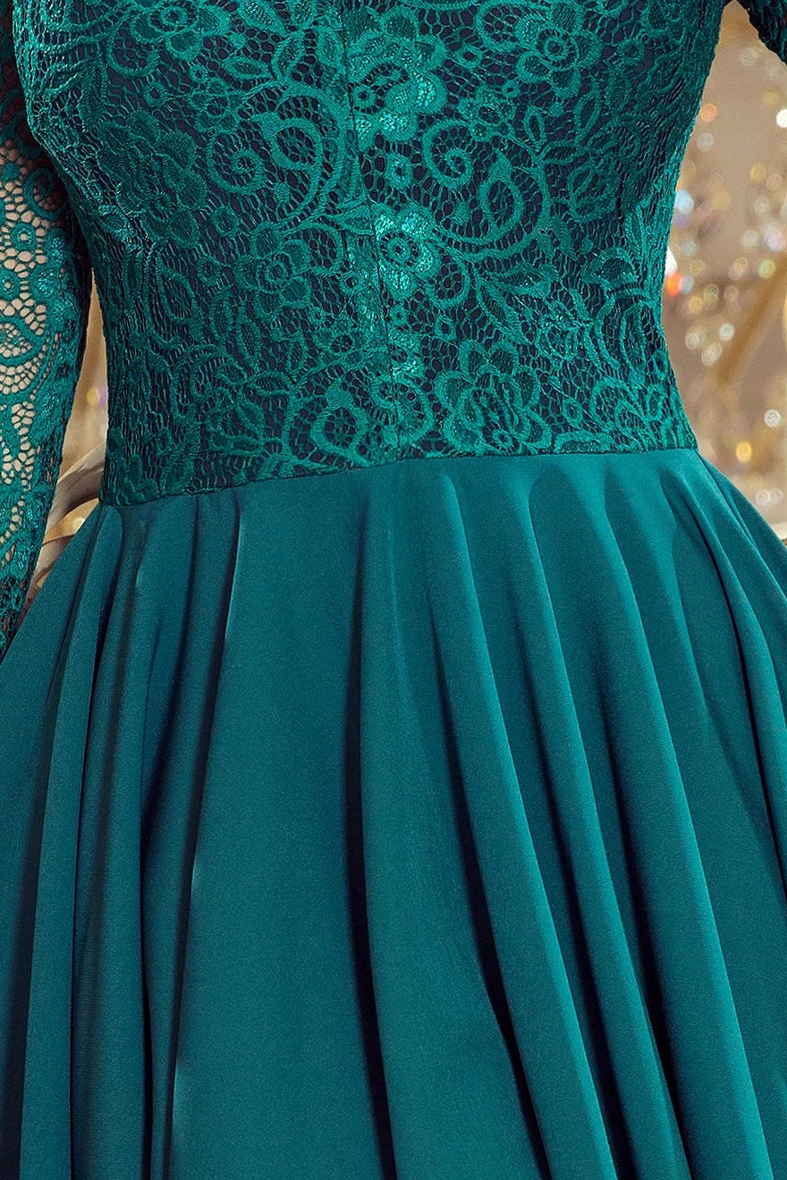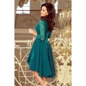 Originální dámské šaty 210-8 Numoco - asymetrický střih - tříčtvrteční rukávy - hluboký výstřih lemovaný krajkou - sukně vzadu prodloužená