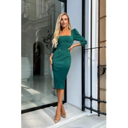 Mimořádně elegantní šaty šité do tužkového střihu. Rukávy s dlouhými nárazníky. Výstřih na zádech zakončený dvěma knoflíky dodává styl a eleganci. Úzká sukně s rozparkem na zádech. Šaty jsou podšité. K dispozici v různých barvách.