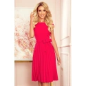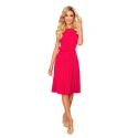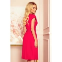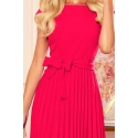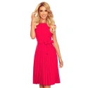 Dámské šaty 311-5 LILA NUMOCO - malinová barva - řasený střih - krátké rukávy - délka sukně nad kolena - kapsy - zavazování na pásek s velkou mašlí - zapínání vzadu na skrytý zipMateriálové složení: 95% polyester + 5% elastan