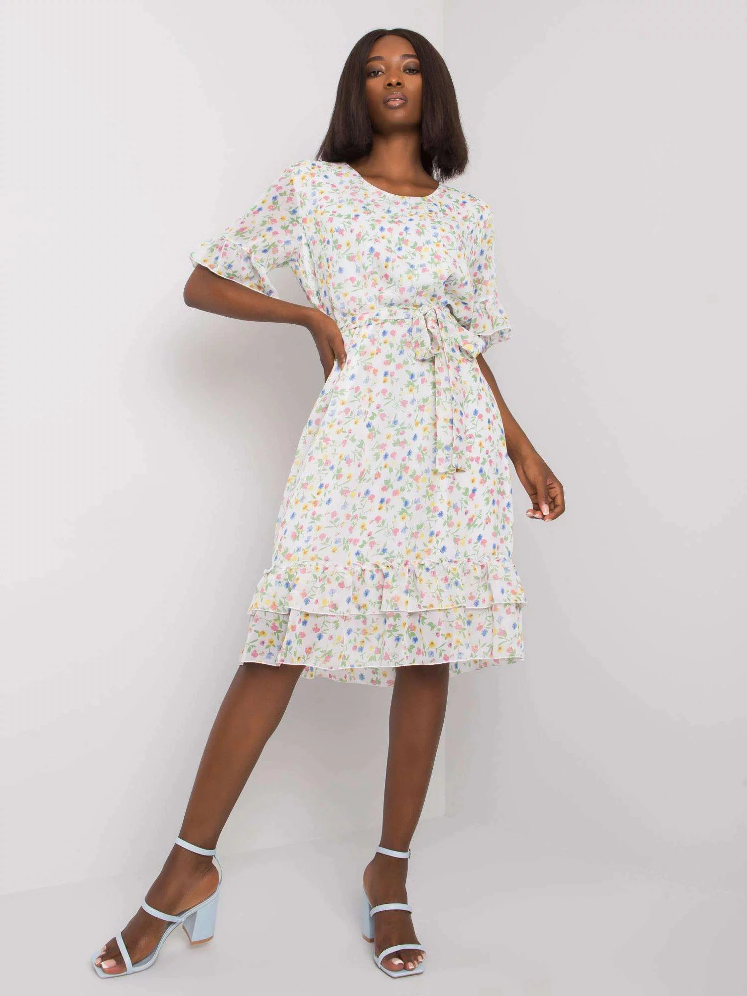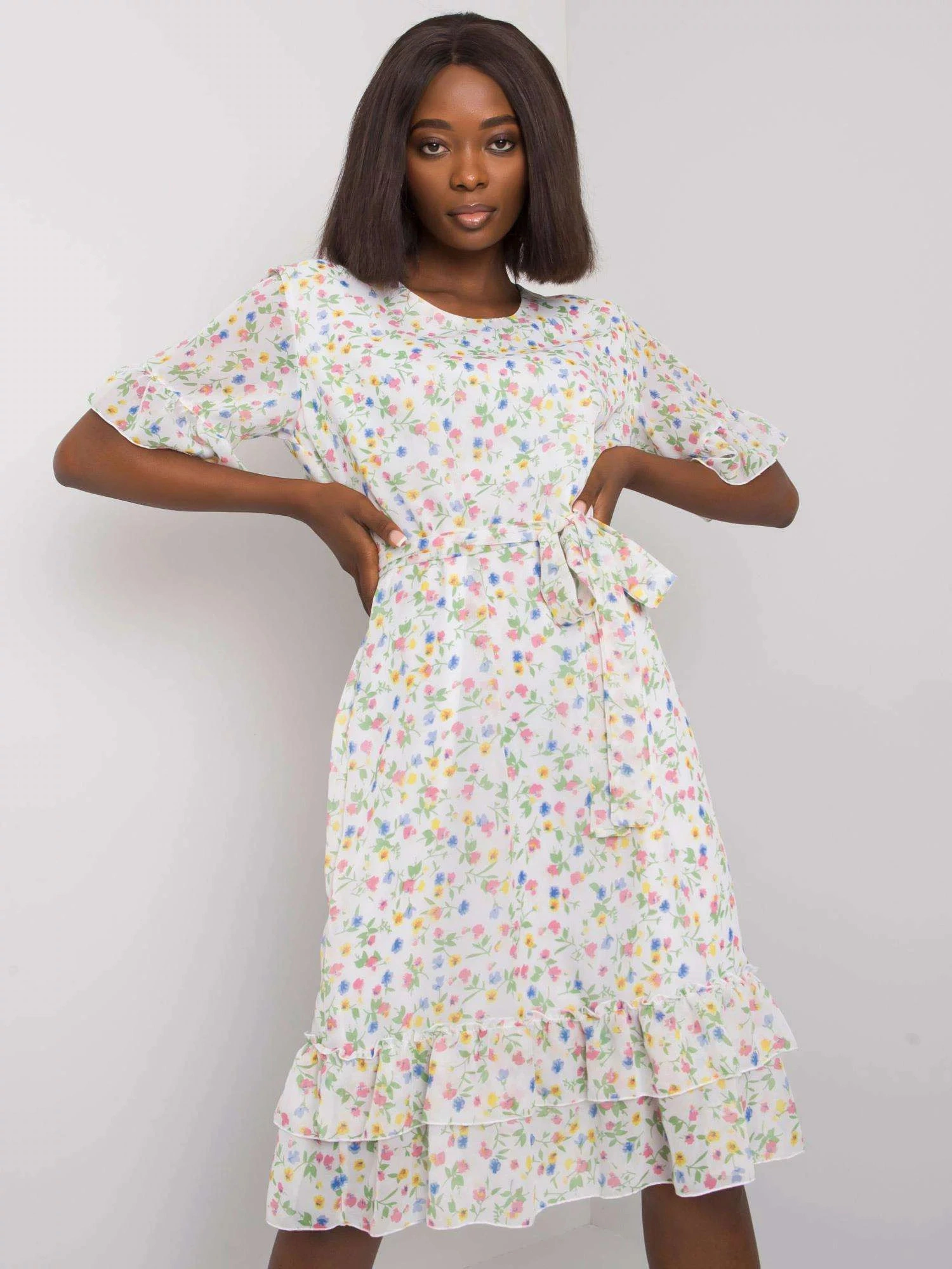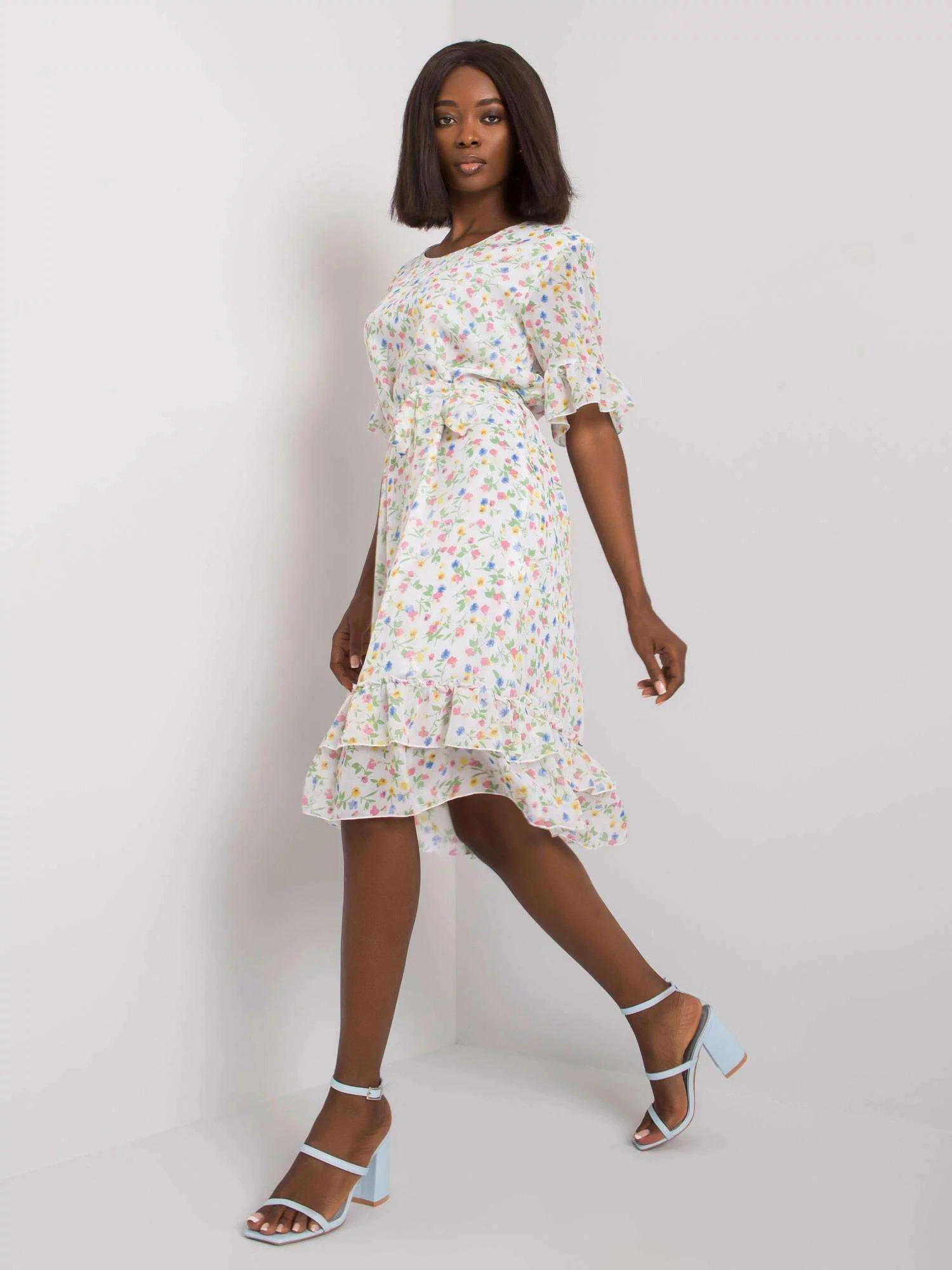 Květinové šaty s volánkovým lemem.