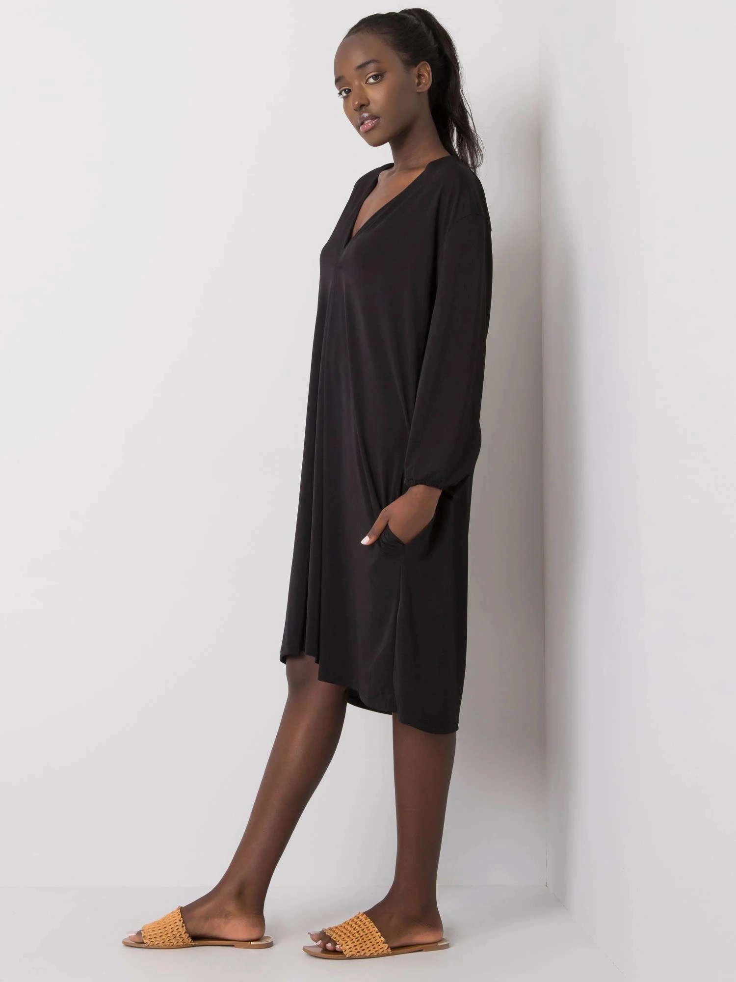Černé dámské šaty volného střihu