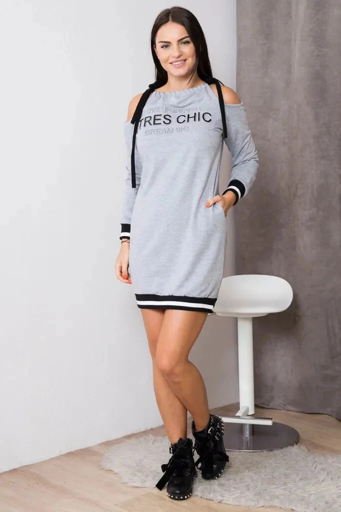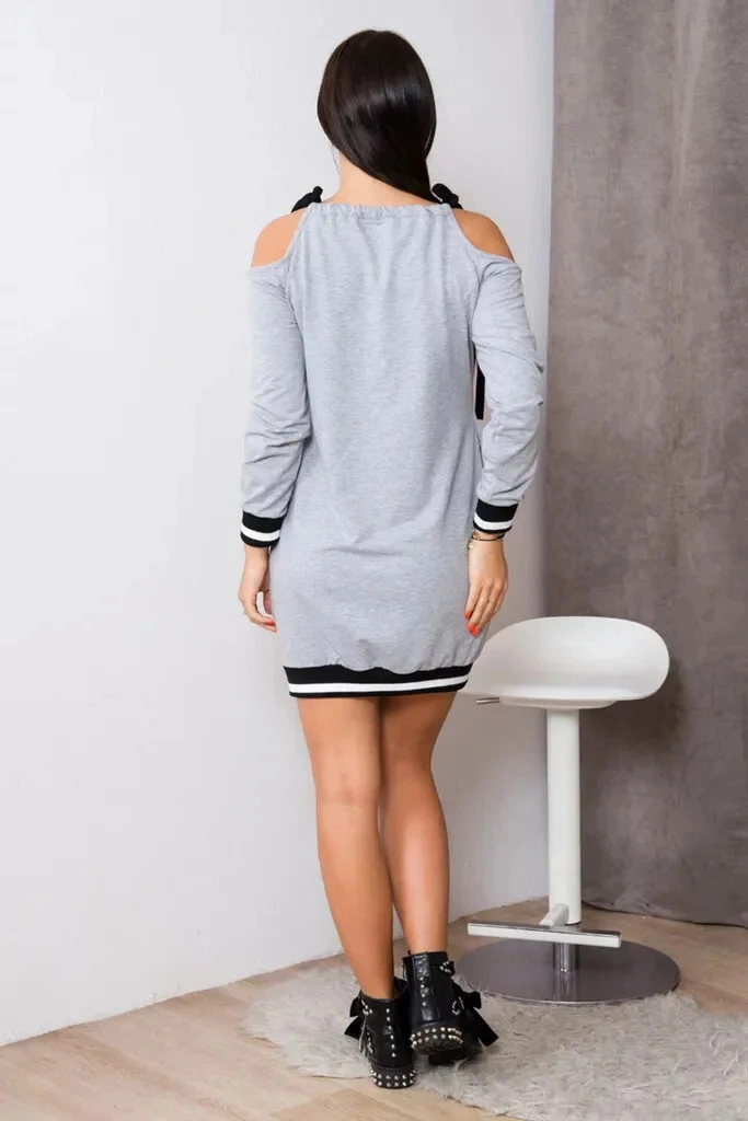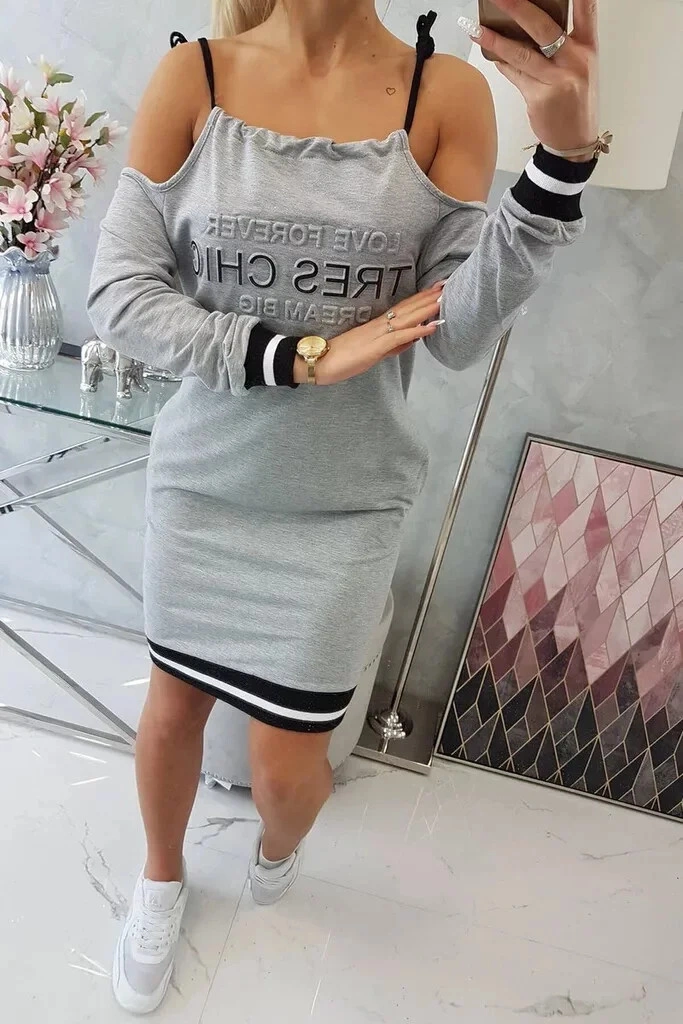 Dámské volnočasové šaty s plastickými nápisy, s odhalenými rameny a se zavazováním na šňůrky. Vhodné pro vel. S, M a L.