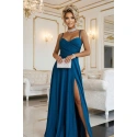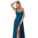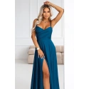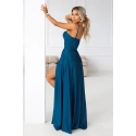 Maxi šaty Numoco Basic v odstínu tmavě mořské modři jsou modelem, který působí dojmem "večerní sebejistoty". Minimalistické ve formě, ale rafinované v detailech: hladká linie, jasně vyznačený pas, vyztužené košíčky v oblasti poprsí a rozparek, který dodává siluetě lehkost při každém kroku.