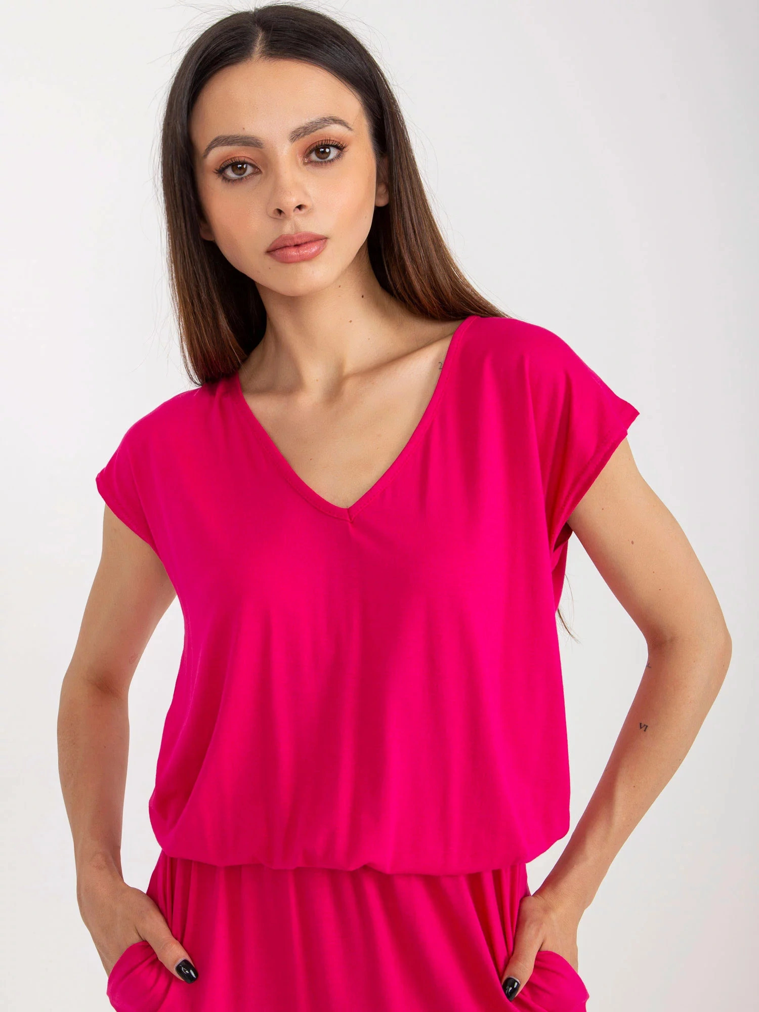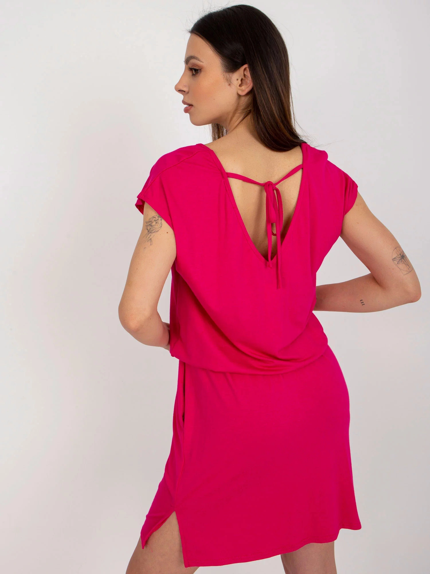 Fuchsiové šaty pro každodenní nošení s krátkými rukávy od značky RUE PARIS.