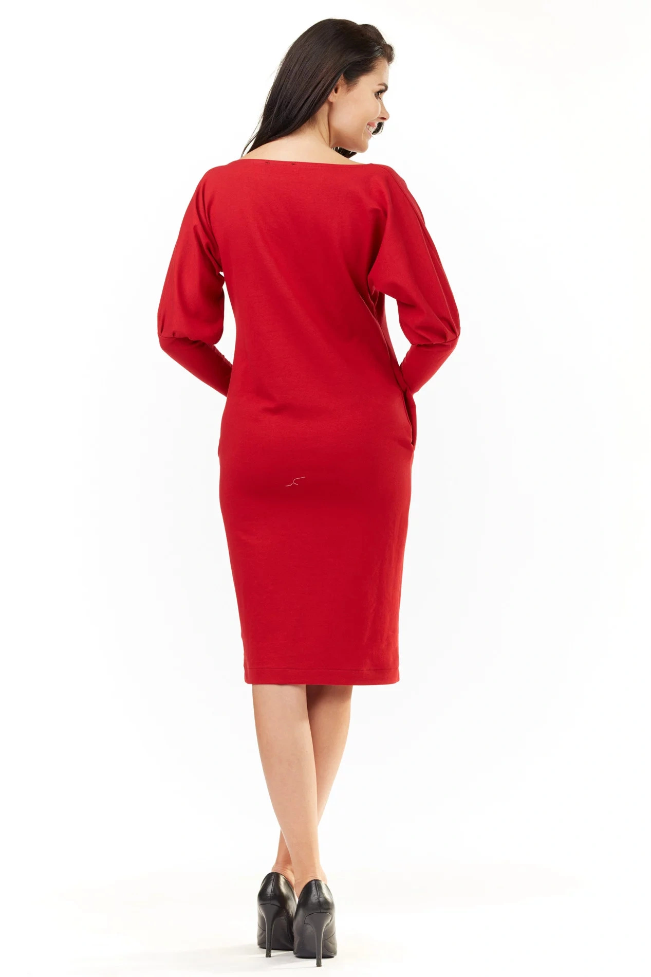 Midi šaty s dlouhými rukávy. Kapsy v bočních švech. Prezentovaná velikost: 36, výška modelu: 172.