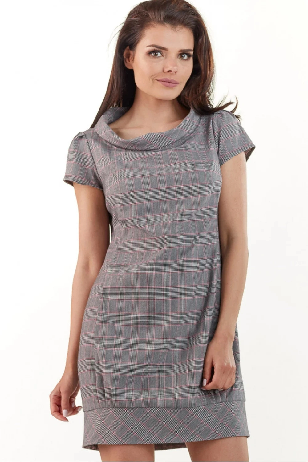 Zajímavé šaty z kostkované látky. Šaty s ozdobným decentním límcem. Ve spodní části je zakončena jemným lemem. Šaty mají krátké rukávy.