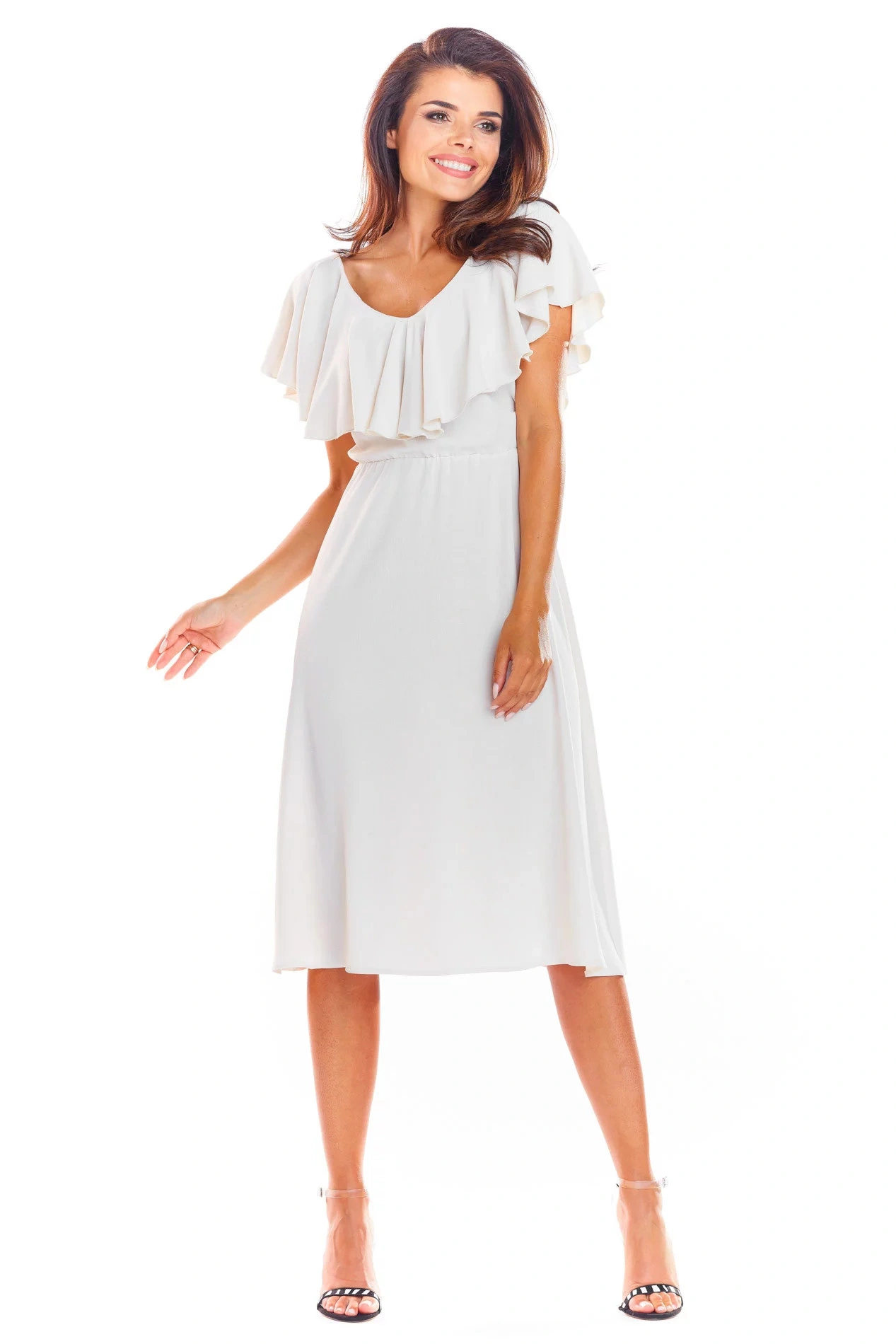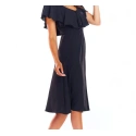 Dámské šaty 144-2 Sara Numoco s délkou pod kolena - s krátkými rukávy - s lodičkovým výstřihem - s d