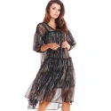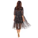 Dámské šifonové šaty s moderním potiskem a dlouhými rukávy. Šaty jsou v délce midi, mají volný střih. Zadní část je vyrobena z černého tylu a přední část má ozdobné krajkové vložky.