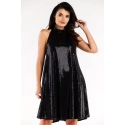 Volné, rozšířené šaty s ozdobným volánovým výstřihem, na stojáčku se zapínáním na knoflíky na zádech. Šaty jsou ušité na elastické podšívce. Šaty vyrobené v Polsku.