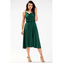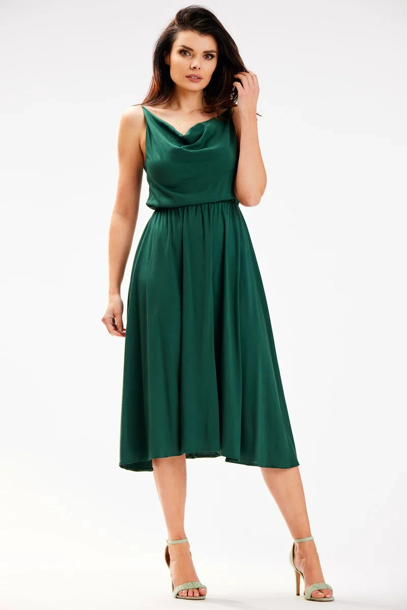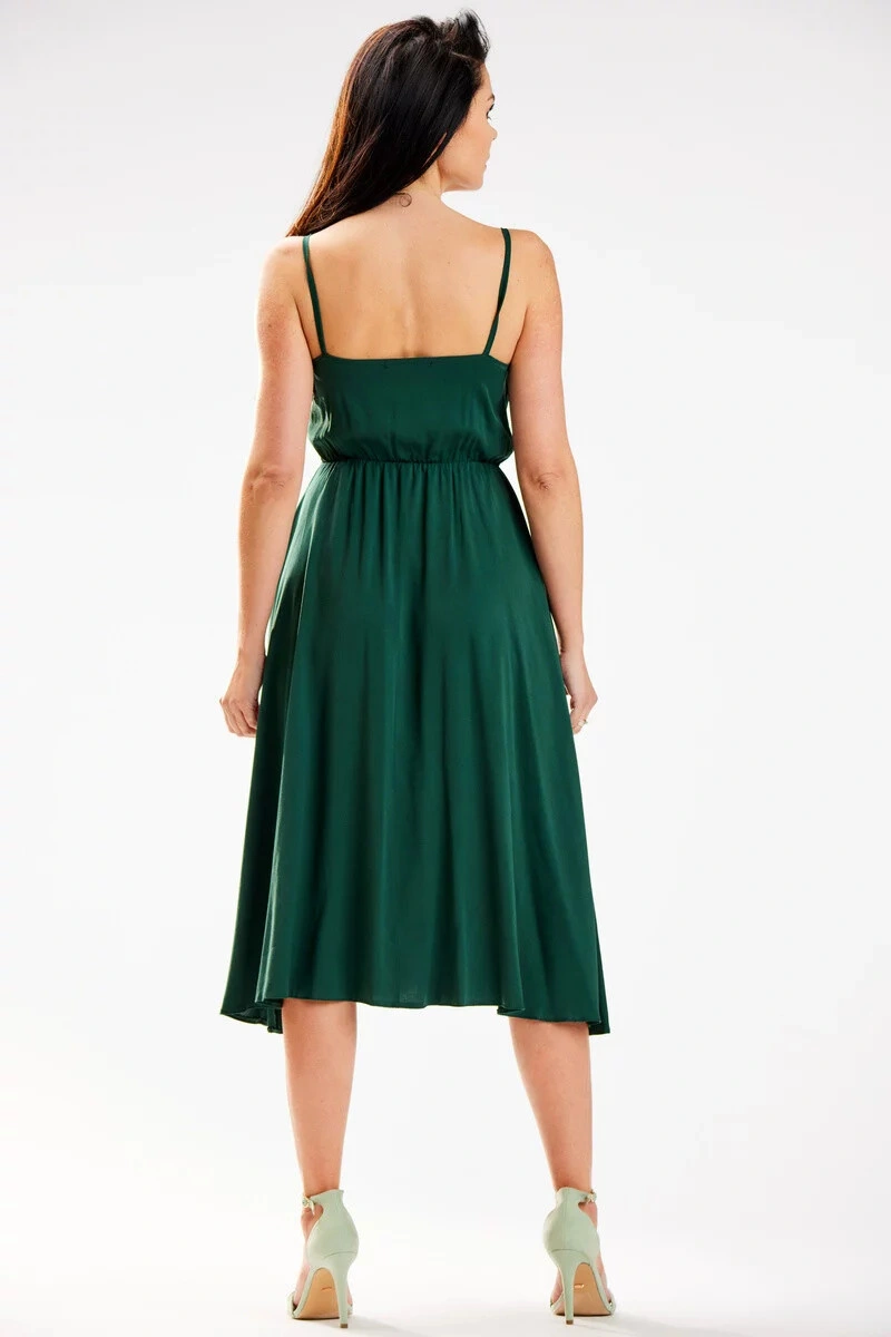 Dámské midi šaty s vodou ve výstřihu a gumou v pase. Lehké, vzdušné šaty na ramínka, ideální pro každou příležitost!