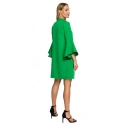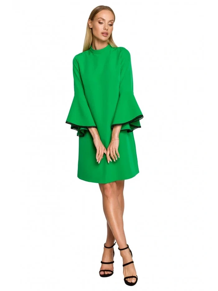 Všichni víme, že šaty ve tvaru lichoběžníku nebo áčkové šaty mohou lichotit každému typu postavy. Přidáním efektního andělského rukávu zakončeného ozdobným lemem jsme tyto šaty učinili ještě dokonalejšími. Může být něco lepšího? INFORMACE O PRODUKTU: tkaná látka pravidelný střih šaty áčkového střihu přetažené přes hlavu andělské rukávy zakončené ozdobnými lemy stojáček zapínání na knoflíky na rameni délka nad kolena bez podšívky náš model měří 171 cm a nosí velikost S