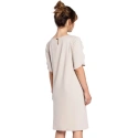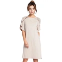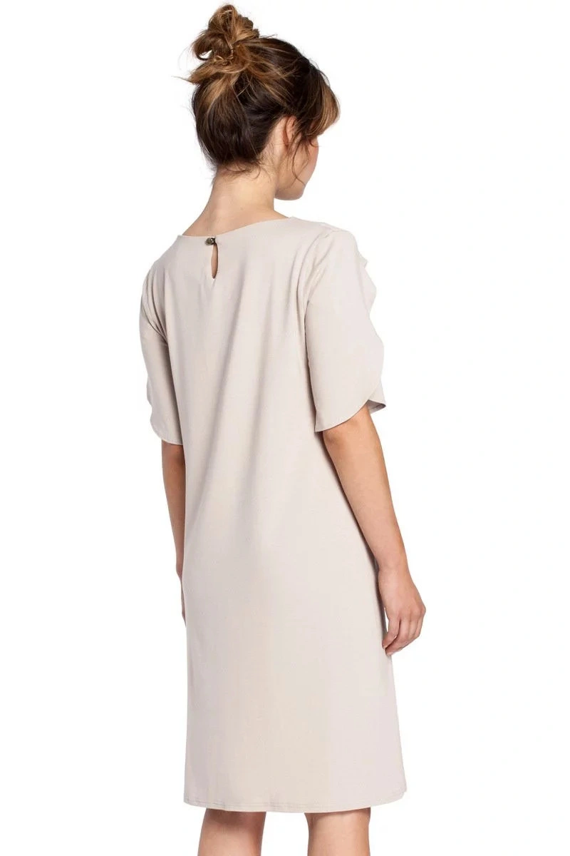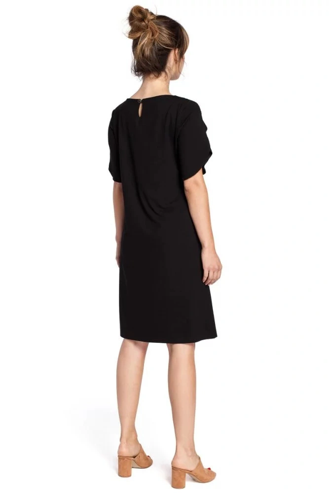 Šaty K367 - jednoduché, ale elegantní šaty s krátkými rukávy - ozdobná mašle ve výstřihu - dole mírn