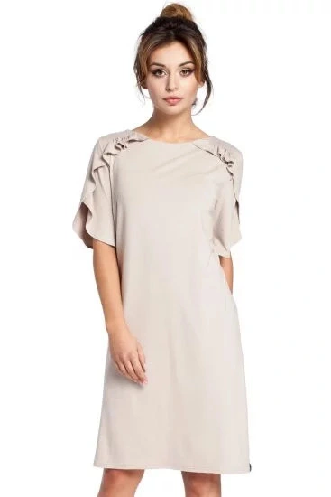 Dámské šaty, ve přední části ozdobný lem s volánky na obou stranách. Vzadu zapínání na zip. 80% Pol
