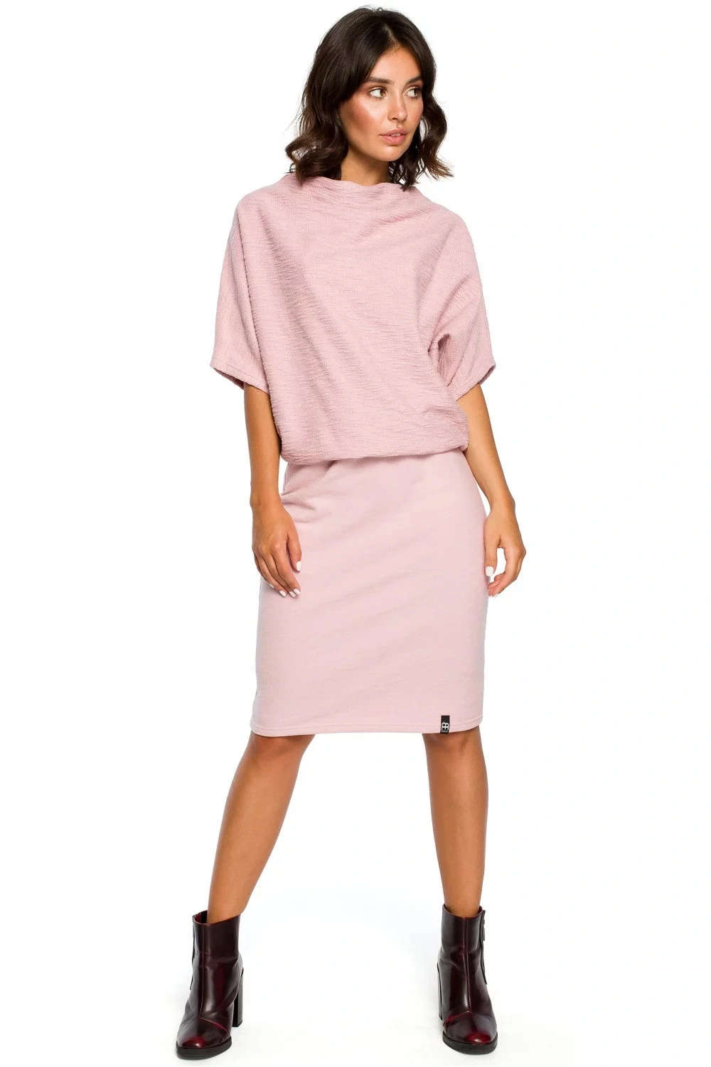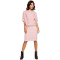 Mimořádně pohodlné šaty z pružného oboustranného úpletu, kde je tužkový spodní díl kombinován s volným vrškem s kimonovými rukávy. Pohodlí a elegance v jednom. Šaty jsou bez podšívky.