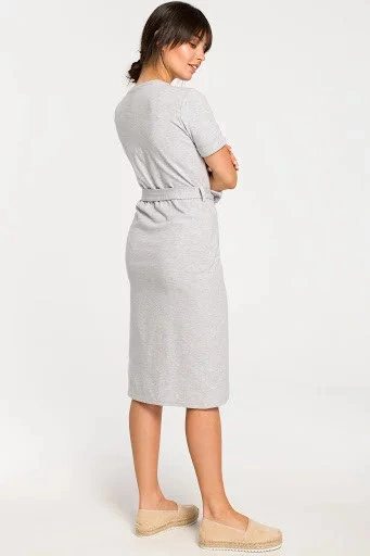 Šedé košilové midi šaty bez zapínání, zavazování v pase, s límečkem, bez kapes, bez podšívky. Mater