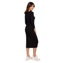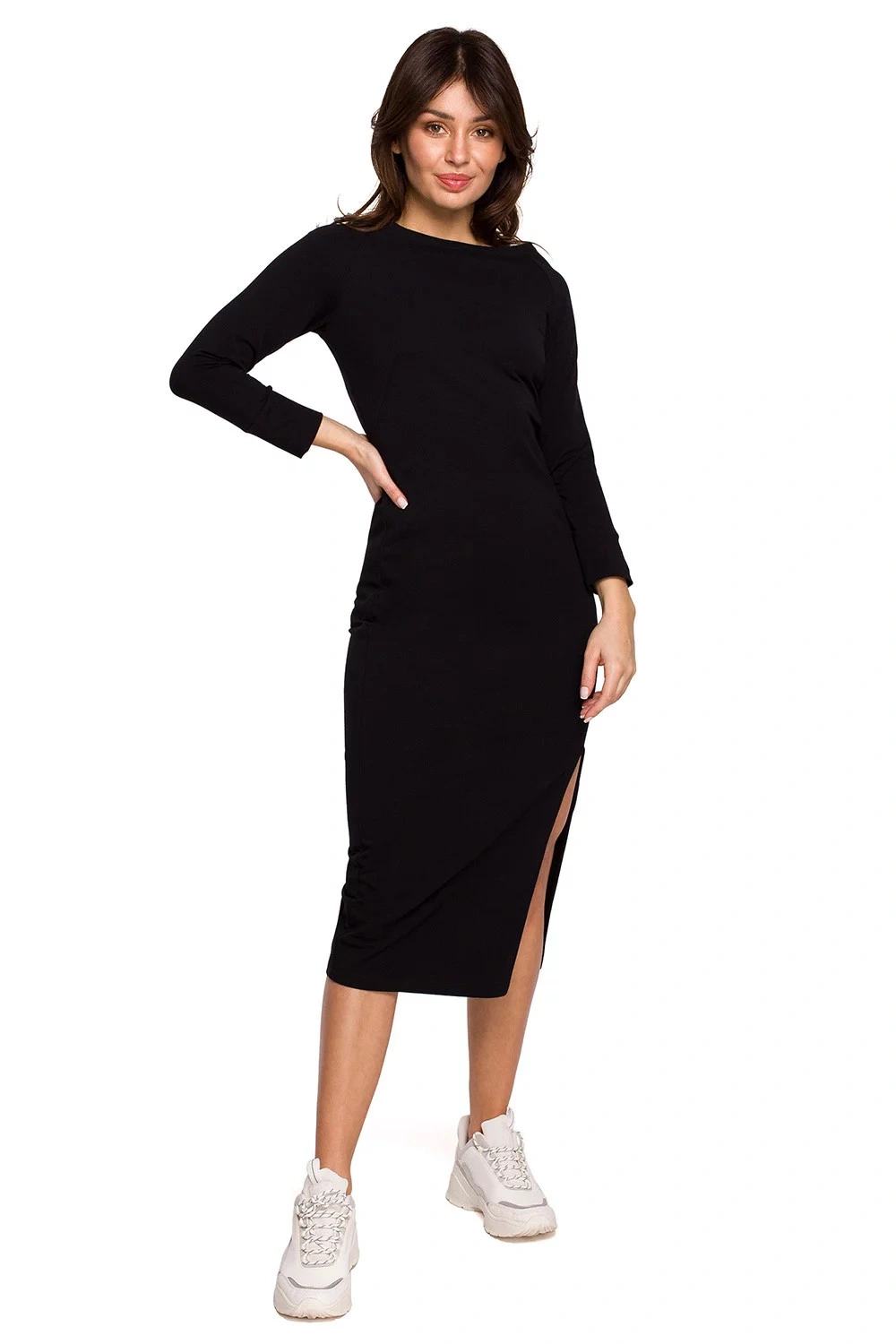 V jednoduchosti je síla. Naše midi šaty na míru s lodičkovým výstřihem, úzkými rukávy a atraktivním vykrojením na nohou stojí za pozornost. Je vyrobeno z bavlněného úpletu, který přiléhá k tělu, takže bude dobře vypadat a pohodlně se nosit.