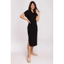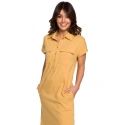 Tyto šaty mají mnoho tváří. Jednoduchá košile s límečkem a kapsami ve stylu safari na přední straně sahá do půli lýtek a má rozparky na bocích. Je volné a ležérní, ideální pro horké dny, zejména proto, že je vyrobeno z bavlny, která umožňuje pokožce dýchat. Shromážděné s páskem se v mžiku změní.