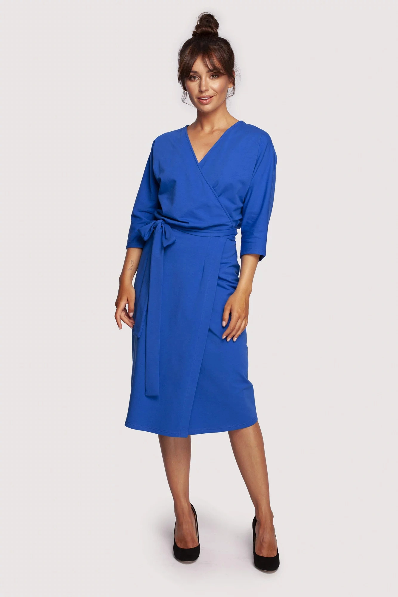 Když se elegance snoubí s pohodlím, vznikají dokonalé šaty! Tyto krásné šaty jsou ušity z bavlněného úpletu a mají zavinovací střih s postavě lichotivými záhyby v pase, hlubokým výstřihem a zavazováním na boku.