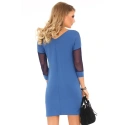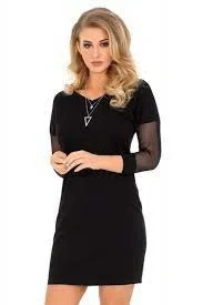 Elegantní, univerzální šaty z měkkého bavlněného úpletu. Zdobené tylovými rukávy. Jednoduchý střih, který pěkně zvýrazňuje rysy postavy. 3/4 rukávy. Pokud hledáte něco, co můžete libovolně kombinovat buď s jehlovými podpatky, balerínami, nebo teniskami - tyto šaty budou ideální.
