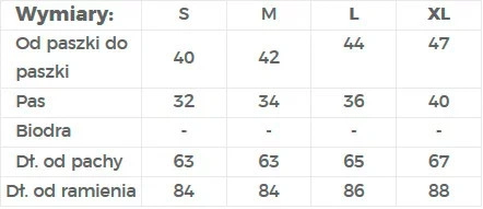 | Od podpaží k podpaží | 40 | 42 | 44 | 47 |