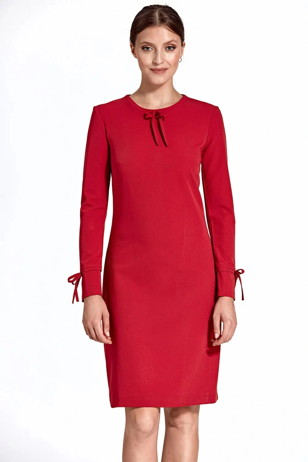 Pouzdrové šaty S295 - asymetrická zavinovací přední část s pevnými knoflíky - výstřih ve tvaru V - r