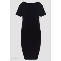 Šaty rovného střihu v černé barvě. Imitace kůže na přední straně, ozdobný řetízek na poprsí. Zip na