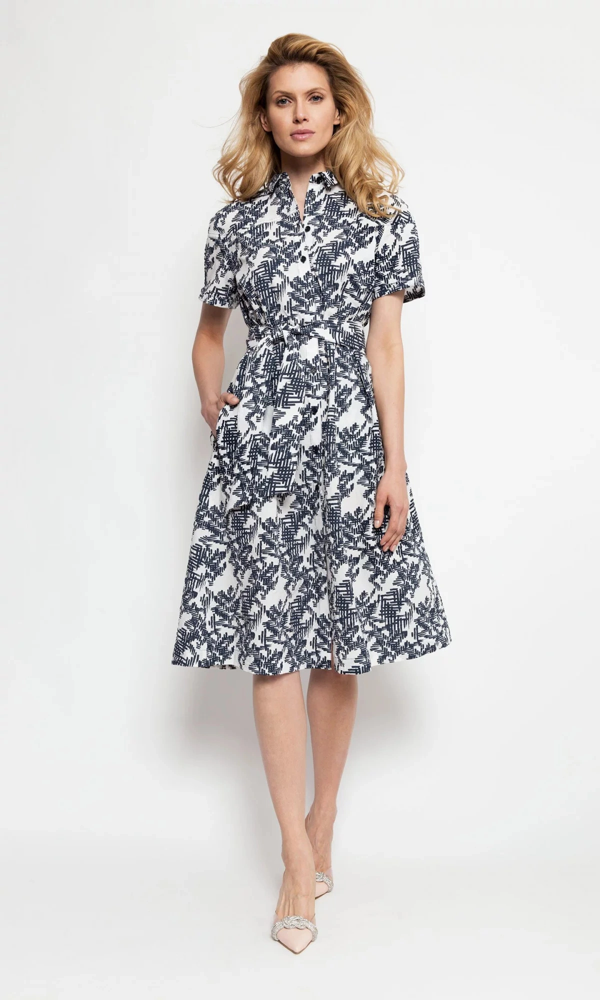 Dámské bavlněné košilové šaty s krátkým rukávem, s tmavým potiskem a páskem v pase.100% bavlnaPokyny pro péči: Pokyny pro praní: Ruční praní nebo profesionální chemické čištěníKolekce: jaro/létoPohlaví: ženské