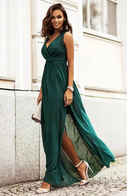 Neobyčejné šifonové maxi šaty, které udělají velkolepý dojem. Toto je naše nová Dolores, nechte se okouzlit jejím půvabem. Je tak lehká a vzdušná, že se s vámi bude při každém pohybu sexy pohupovat. Horní část šatů má vpředu i vzadu výstřih do V, díky kterému krásně zvýrazníte linii poprsí a zad. Pro lepší přizpůsobení je v pase všitá gumička a také šňůrka, která umožňuje dokonalé přizpůsobení šatů v pase. Boční rozparek dodává lehkost a zdůrazňuje opálené nohy. Dokonalý střih zaručuje pohodlí při nošení šatů. Dolores se skvěle hodí pro speciální akce. Bude také ideálním společníkem na procházky po pláži. Šaty byly navrženy a ušity v Polsku.