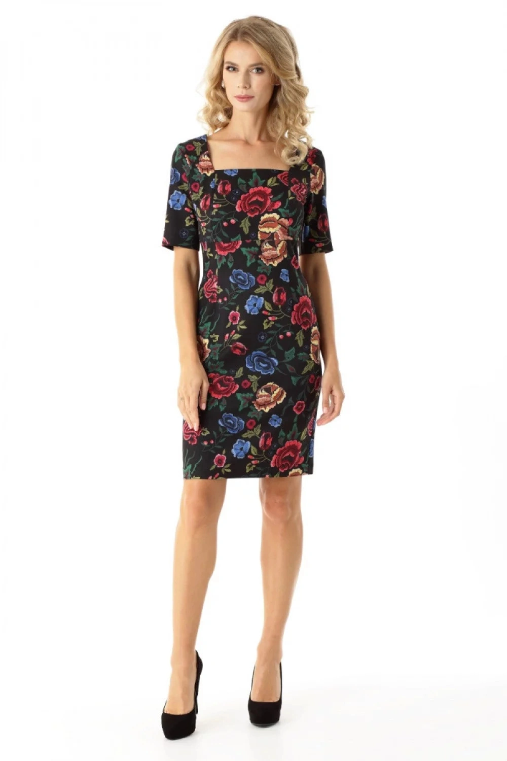 Šaty S213 Romantický květinový potisk a vzdušná šifonová tkanina v oblíbeném áčkovém střihu s elasti