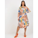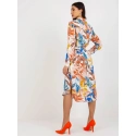 Béžové midi šaty s potisky .